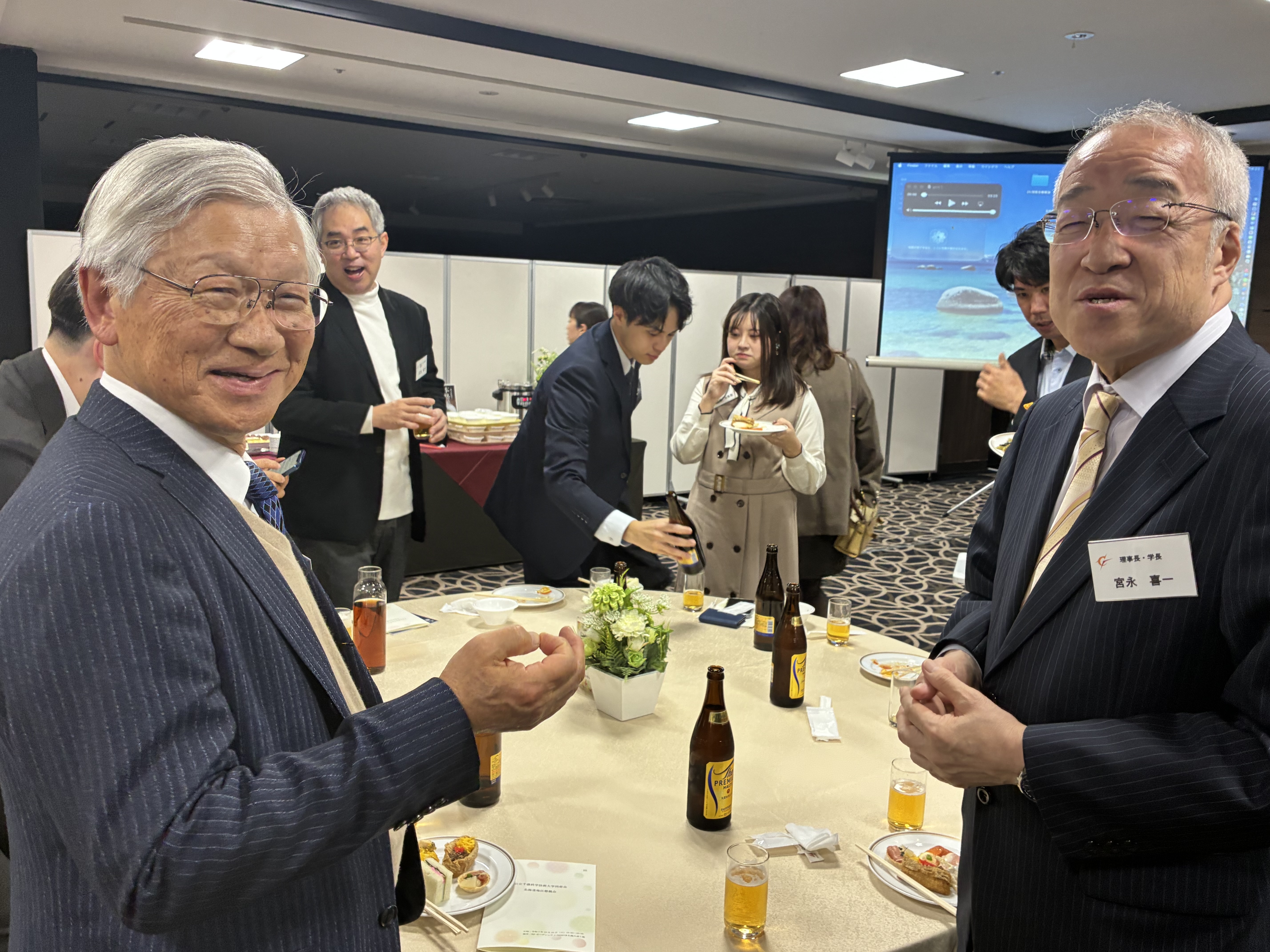 久しぶりの再会に学生時代の思い出話や近況報告に花が咲き、会場は終始和やかな雰囲気に包まれました。また、現役学生より翌日に控えた稜輝祭の紹介もあり、参加者の皆様から母校の発展を喜ぶ声が聞かれました。終盤には抽選会が実施され、当選者の発表のたびに大きな歓声が上がるなど、会は一層の盛り上がりを見せました。