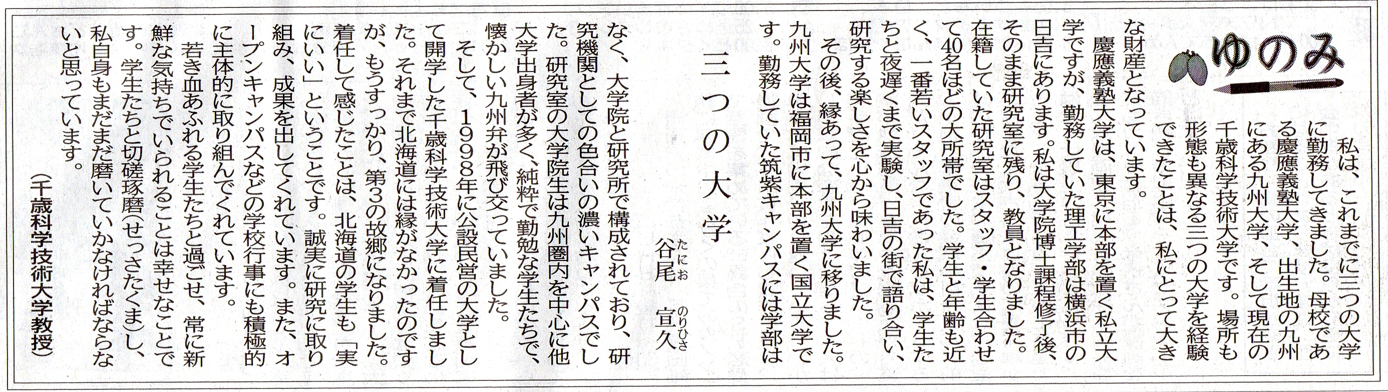 2017年6月より2018年5月まで千歳民報・苫小牧民報の「ゆのみ」欄にコラムを連載しました。